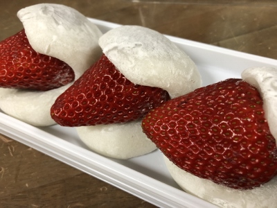 おっきなおっきないちごの入ったさいたま梅林堂の「イチゴ大福」。