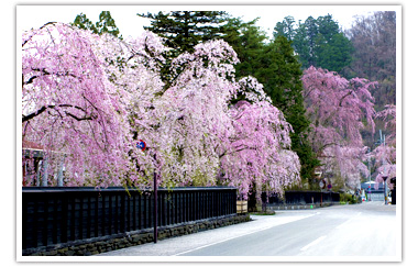 おすすめは長野県白馬村。画像は「野平(のだいら)の一本桜」です。遮るもののない高台の田園地帯に、ソメイヨシノが淡いピンクの花を咲かせ、背後の白馬三山との鮮やかなコントラストを描き出します。朝日に照らされる山々と桜の競演は、多くの写真家を魅了する神々しい光景です。村の素朴な原風景の中に息づく、春の白馬を象徴するような美しさを楽しめます。見頃は例年4月下旬から5月上旬にかけてです。