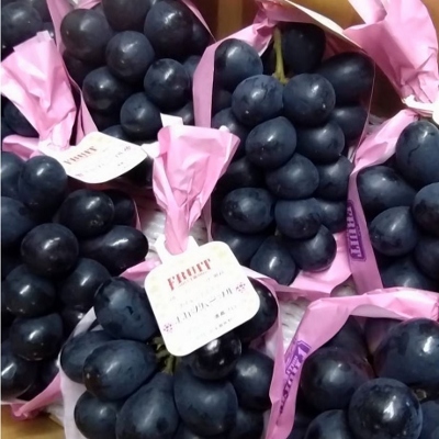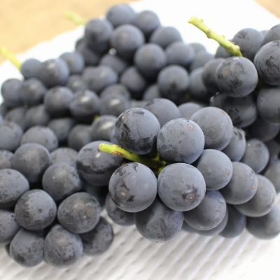 いつもは「巨峰」と「シャインマスカット」をお願いして送っていただいておりますが、今回ちょっと違う品種をお願いしてみました。