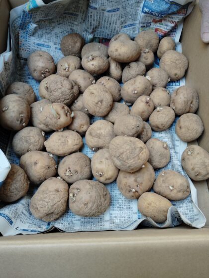 昨年収穫して保存して置いた芋がイイ感じに発芽して来たので