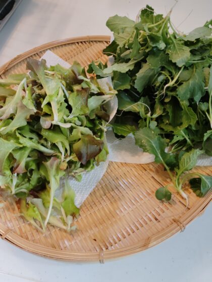 かぶの葉とサニーレタスの間引き菜です