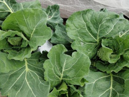 キャベツのネットを持ち上げて覗いて見たら少しずつ巻き出しているようです