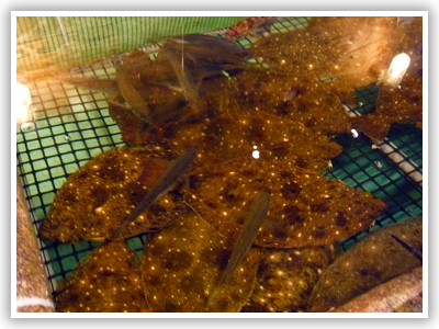 泳いでいるのは、 鯛、鯵、平目、カサゴ、伊勢えびなど。