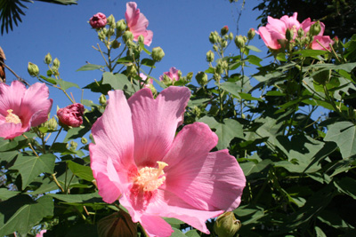 ふようの花が庭中に咲き乱れています。その美しさはまるで天国にいるかのよう。