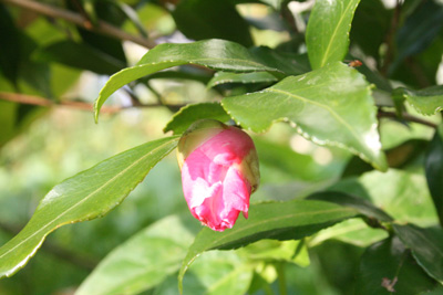 入口から参道を通って手を清めてあるいていくと大仏につく前にとてもきれいなさざんかの花が咲いていました。