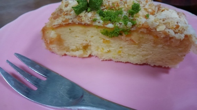 「かに玉ケーキ」のお味はわかりませんが、「かつ丼ケーキ」のお味はオレンジムース。