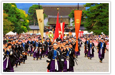 続いては、京都の平安神宮で毎年10月22日に開催される「時代祭」。5月の葵祭、7月の祇園祭と並び「京都三大祭」のひとつに数えられています。
