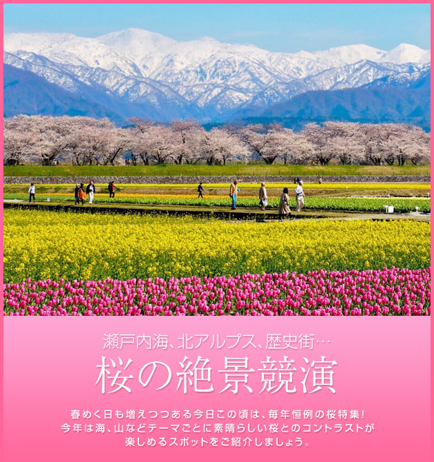 続いてご紹介するのは、白い残雪が映える春の北アルプスと桜のコントラストが楽しめるスポットです。