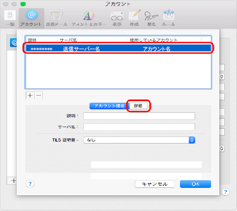 ・表示された画面で、リストから作成したアカウントのサーバーを選択し、【詳細】をクリックします。