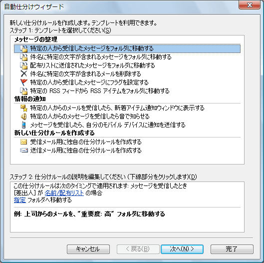 今回は Outlook 2007/2003 での自動振り分けの設定について紹介します。
